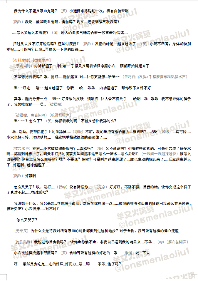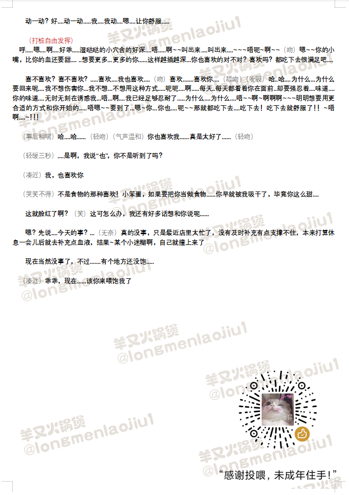 显示源文件过去修订反向链接回到顶部 Share via Share via... Twitter LinkedIn Facebook Pinterest Telegram WhatsApp Yammer Reddit Teams最近更改Send via e-Mail打印Permalink × 这是本文档旧的修订版! 不要靠近我 (定制本☀开放录制授权) 简介tag: 温柔吸血鬼店长 X 乖巧吃货小迷糊 作者:羊又火锅煲 署名-非商业性使用: 台本使用声明:录制前请阅读 🦋Twitter/B站:羊又火锅煲 👏🏻👏🏻👏🏻👏🏻欢迎使用,录制前请联系作者获得授权 一爱男喘💙 🦋Twitter主题帖→台本主题帖直通车 ←可戳主题帖浏览 🔼🔼🔼🔼 👆👆👆☝☝👆👆👆 🔼🔼🔼🔼 录制请敲台本主获得授权🦋Twitter ©️羊又火锅煲🦋Twitter 编剧/羊又火锅煲/不要靠近我.1671354307.txt.gz 最后更改: 2022/12/18 09:05由 羊又火锅煲