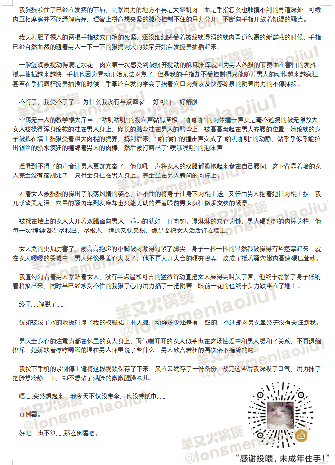 显示源文件过去修订反向链接回到顶部 Share via Share via... Twitter LinkedIn Facebook Pinterest Telegram WhatsApp Yammer Reddit Teams最近更改Send via e-Mail打印Permalink × 这是本文档旧的修订版! 教师节礼物○路人女学生视角 简介tag: 偷窥 X 女性自慰 (顶胯抱操) 作者:羊又火锅煲 署名-非商业性使用: 台本使用声明:录制前请阅读 🦋Twitter/B站:羊又火锅煲 👏🏻👏🏻👏🏻👏🏻欢迎使用,录制前请联系作者获得授权 一爱男喘💙 🦋Twitter主题帖→台本主题帖直通车 ←可戳主题帖浏览 🔼🔼🔼🔼 👆👆👆☝☝👆👆👆 🔼🔼🔼🔼 ©️羊又火锅煲🦋Twitter 编剧/羊又火锅煲/教师节礼物_路人视角.1671349180.txt.gz 最后更改: 2022/12/18 07:39由 羊又火锅煲