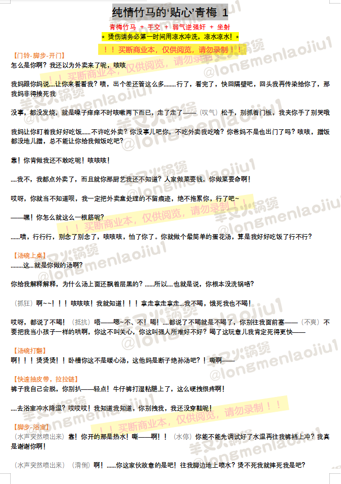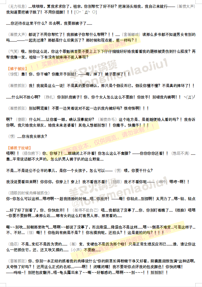 显示源文件过去修订反向链接回到顶部 Share via Share via... Twitter LinkedIn Facebook Pinterest Telegram WhatsApp Yammer Reddit Teams最近更改Send via e-Mail打印Permalink × 这是本文档旧的修订版! 纯情竹马的‘贴心’青梅 1🚫 简介 🚫🚫台本已出售,停止一切录制授权,台本仅供阅览,请勿录制🚫🚫 tag: 青梅竹马 + 手交 + 弱气逆强奸 + 坐射 作者:羊又火锅煲 署名-非商业性使用: 台本使用声明:录制前请阅读 🦋Twitter/B站:羊又火锅煲 👏🏻👏🏻👏🏻👏🏻欢迎使用,录制前请联系作者获得授权 一爱男喘💙 🦋Twitter主题帖→台本主题帖直通车 ←可戳主题帖浏览 🔼🔼🔼🔼 👆👆👆☝☝👆👆👆 🔼🔼🔼🔼 ©️羊又火锅煲🦋Twitter 编剧/羊又火锅煲/纯情竹马的_贴心_青梅_1.1671363949.txt.gz 最后更改: 2022/12/18 11:45由 羊又火锅煲