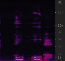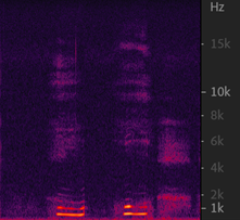 以声音频率、时间为坐标轴,比波形图更直观、信息量更大 通过观察频谱图背景是否干净,可以看出底噪的大小(左图底噪>右图底噪)