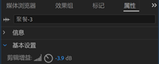 - 【方法二】单击选中,属性-基本设置-剪辑增益,可单独调整片段音量