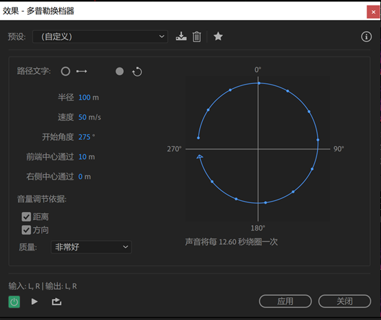 【注意】需要录制双声道音频,或将单声道音频转换为双声道音频才能实现该效果