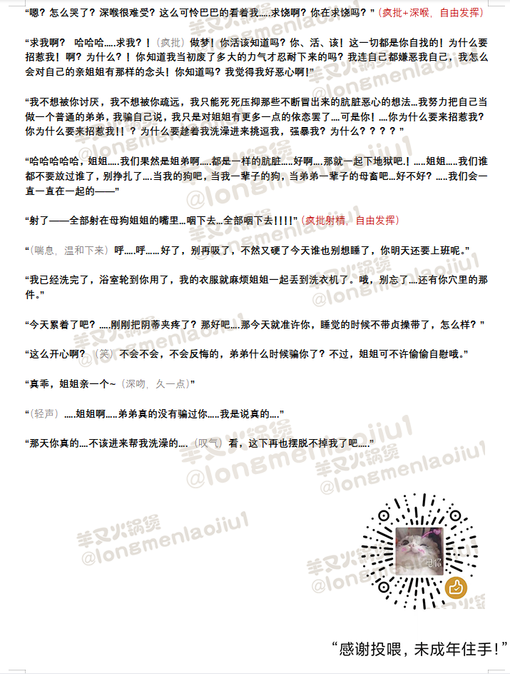 tag: 疯批姐弟真骨科 + 粗口暗黑向双暗恋 + 遥控自慰 + 足交蹭穴 + 塞穴高潮 + 失禁 + 毒龙 + 深喉