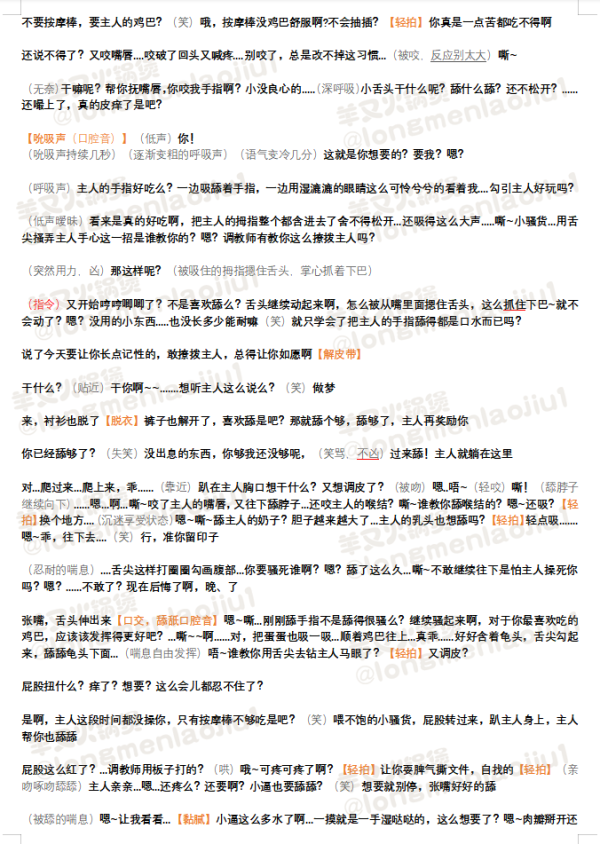 显示源文件过去修订反向链接回到顶部 Share via Share via... Twitter LinkedIn Facebook Pinterest Telegram WhatsApp Yammer Reddit Teams最近更改Send via e-Mail打印Permalink × 温柔大佬的娇气金丝雀 简介tag:温柔调教+固定拘束+口球|跳蛋|按摩棒放置+舔手指+69+后穴挤蛋(跳蛋) 作者:羊又火锅煲 署名-非商业性使用: 台本使用声明:录制前请阅读 🦋Twitter/B站:羊又火锅煲 👏🏻👏🏻👏🏻👏🏻欢迎使用,录制前请联系作者获得授权 一爱男喘💙 🦋Twitter主题帖→台本主题帖直通车 ←可戳主题帖浏览 🔼🔼🔼🔼 👆👆👆☝☝👆👆👆 🔼🔼🔼🔼 ©️羊又火锅煲🦋Twitter 编剧/羊又火锅煲/温柔大佬的娇气金丝雀.txt 最后更改: 2023/04/14 04:18由 羊又火锅煲